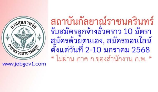 สถาบันกัลยาณ์ราชนครินทร์ รับสมัครลูกจ้างชั่วคราว 10 อัตรา ตั้งแต่วันที่ 2-10 มกราคม 2568