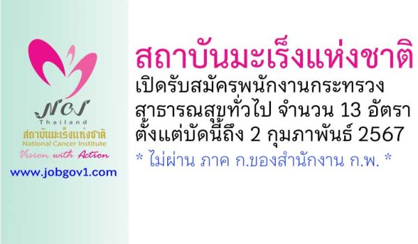 สถาบันมะเร็งแห่งชาติ รับสมัครพนักงานกระทรวงสาธารณสุขทั่วไป 13 อัตรา ตั้งแต่บัดนี้ถึง 2 กุมภาพันธ์ 2567