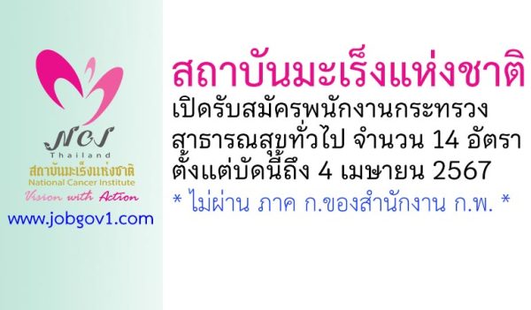สถาบันมะเร็งแห่งชาติ รับสมัครพนักงานกระทรวงสาธารณสุขทั่วไป 14 อัตรา ตั้งแต่บัดนี้ถึง 4 เมษายน 2567
