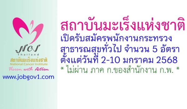 สถาบันมะเร็งแห่งชาติ รับสมัครพนักงานกระทรวงสาธารณสุขทั่วไป 5 อัตรา ตั้งแต่วันที่ 2-10 มกราคม 2568