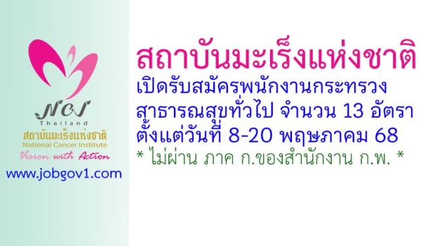 สถาบันมะเร็งแห่งชาติ รับสมัครพนักงานกระทรวงสาธารณสุขทั่วไป 13 อัตรา ตั้งแต่วันที่ 8-20 พฤษภาคม 2568