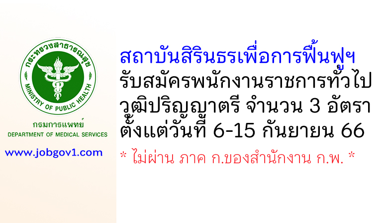 สถาบันสิรินธรเพื่อการฟื้นฟูฯ รับสมัครบุคคลเพื่อเลือกสรรเป็นพนักงานราชการทั่วไป 3 อัตรา ตั้งแต่วันที่ 6-15 กันยายน 2566