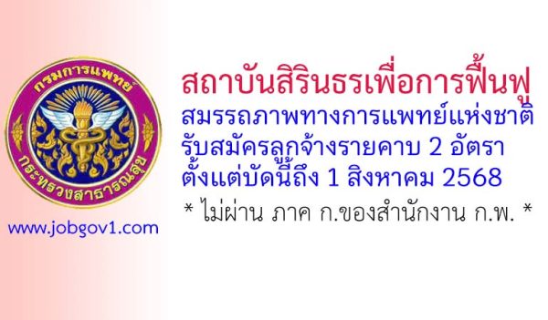 สถาบันสิรินธรเพื่อการฟื้นฟูสมรรถภาพทางการแพทย์แห่งชาติ รับสมัครลูกจ้างรายคาบ 2 อัตรา ตั้งแต่บัดนี้ถึง 1 สิงหาคม 2568