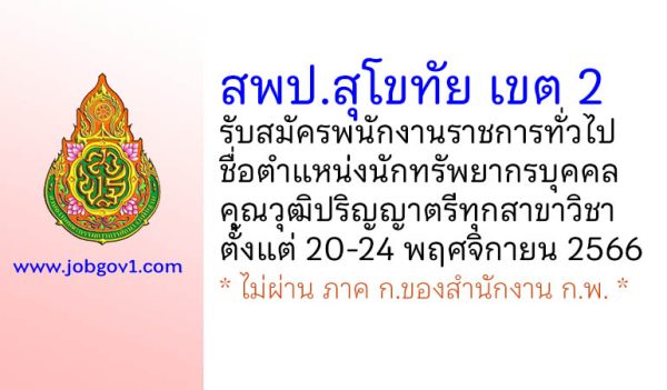 สพป.สุโขทัย เขต 2 รับสมัครพนักงานราชการทั่วไป ตำแหน่งนักทรัพยากรบุคคล ตั้งแต่วันที่ 20-24 พฤศจิกายน 2566
