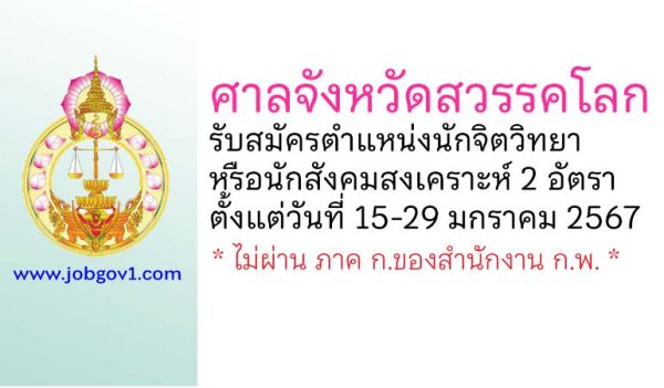ศาลจังหวัดสวรรคโลก รับสมัครนักจิตวิทยา หรือนักสังคมสงเคราะห์ 2 อัตรา ตั้งแต่วันที่ 15-29 มกราคม 2567