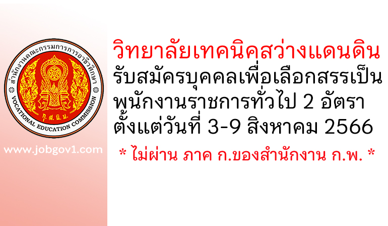 วิทยาลัยเทคนิคสว่างแดนดิน รับสมัครบุคคลเพื่อเลือกสรรเป็นพนักงานราชการทั่วไป 2 อัตรา ตั้งแต่วันที่ 3-9 สิงหาคม 2566