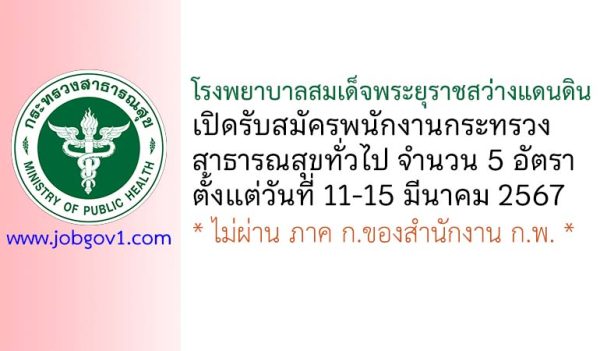 โรงพยาบาลสมเด็จพระยุราชสว่างแดนดิน รับสมัครพนักงานกระทรวงสาธารณสุขทั่วไป 5 อัตรา ตั้งแต่วันที่ 11-15 มีนาคม 2567