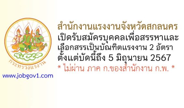 สำนักงานแรงงานจังหวัดสกลนคร รับสมัครบุคคลเพื่อสรรหาและเลือกสรรเป็นบัณฑิตแรงงาน 2 อัตรา ตั้งแต่บัดนี้ถึง 5 มิถุนายน 2567
