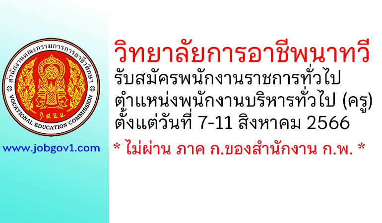 วิทยาลัยการอาชีพนาทวี รับสมัครพนักงานราชการทั่วไป ตำแหน่งพนักงานบริหารทั่วไป (ครู) ตั้งแต่วันที่ 7-11 สิงหาคม 2566
