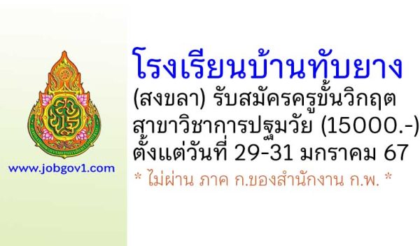 โรงเรียนบ้านทับยาง รับสมัครครูขั้นวิกฤต สาขาวิชาการปฐมวัย ตั้งแต่วันที่ 29-31 มกราคม 2567