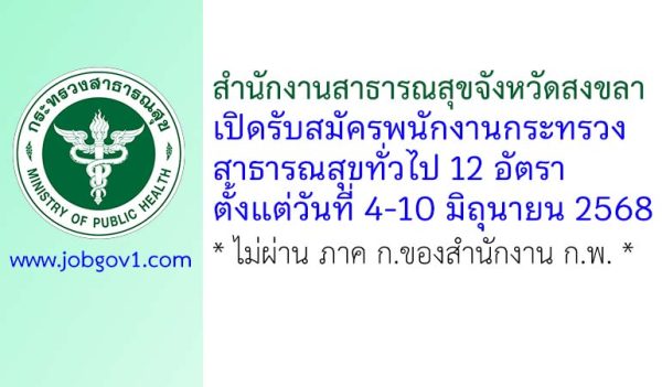 สำนักงานสาธารณสุขจังหวัดสงขลา รับสมัครพนักงานกระทรวงสาธารณสุขทั่วไป 12 อัตรา ตั้งแต่วันที่ 4-10 มิถุนายน 2568