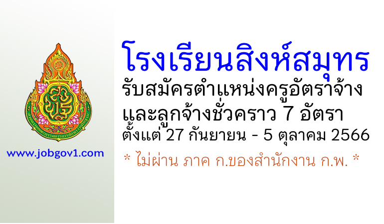 โรงเรียนสิงห์สมุทร รับสมัครครูอัตราจ้าง และลูกจ้างชั่วคราว 7 อัตรา ตั้งแต่ 27 กันยายน – 5 ตุลาคม 2566