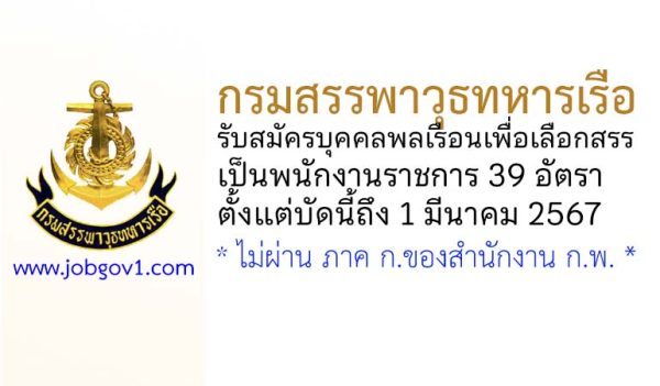 กรมสรรพาวุธทหารเรือ รับสมัครบุคคลพลเรือนเพื่อเลือกสรรเป็นพนักงานราชการ 39 อัตรา ตั้งแต่บัดนี้ถึง 1 มีนาคม 2567