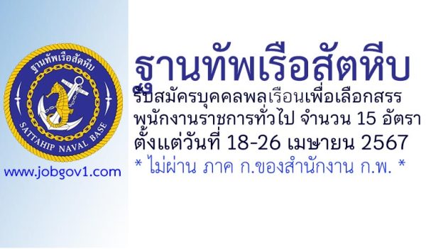 ฐานทัพเรือสัตหีบ รับสมัครบุคคลพลเรือนเพื่อเลือกสรรเป็นพนักงานราชการทั่วไป 15 อัตรา ตั้งแต่วันที่ 18-26 เมษายน 2567