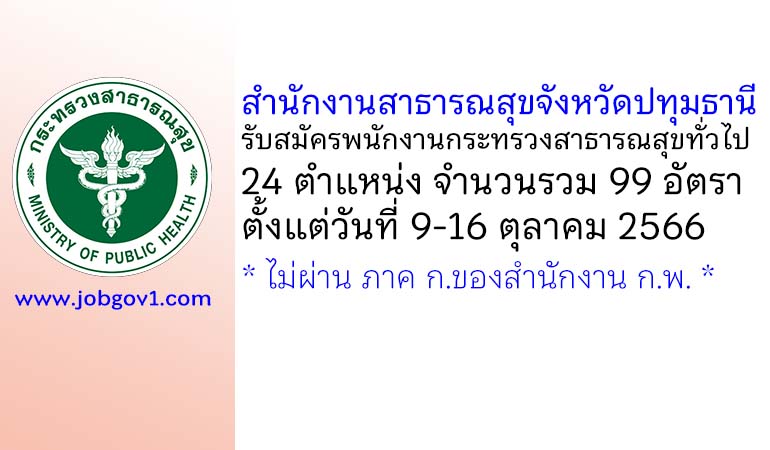 สำนักงานสาธารณสุขจังหวัดปทุมธานี รับสมัครพนักงานกระทรวงสาธารณสุขทั่วไป 99 อัตรา ตั้งแต่วันที่ 9-16 ตุลาคม 2566