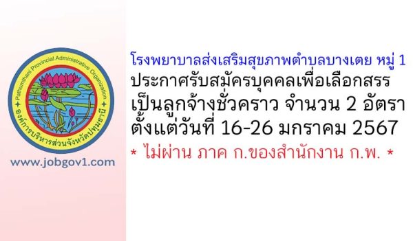 โรงพยาบาลส่งเสริมสุขภาพตำบลบางเตย หมู่ 1 รับสมัครบุคคลเพื่อเลือกสรรเป็นลูกจ้างชั่วคราว 2 อัตรา ตั้งแต่วันที่ 16-26 มกราคม 2567
