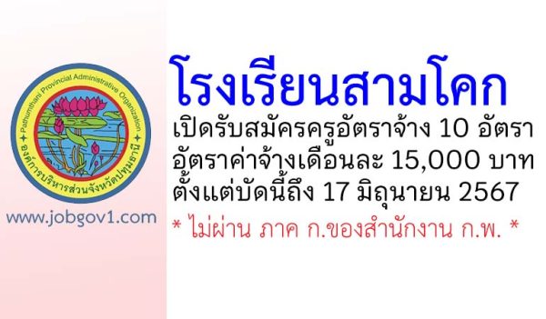 โรงเรียนสามโคก รับสมัครครูอัตราจ้าง 10 อัตรา ตั้งแต่บัดนี้ถึง 17 มิถุนายน 2567