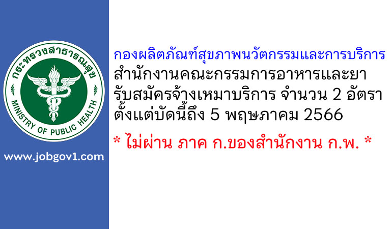 สำนักงานคณะกรรมการอาหารและยา รับสมัครลูกจ้างเหมาบริการ ตำแหน่งนักวิชาการสาธารณสุข 2 อัตรา ตั้งแต่บัดนี้ถึง 31 มีนาคม 2566