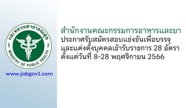สำนักงานคณะกรรมการอาหารและยา รับสมัครสอบแข่งขันเพื่อบรรจุและแต่งตั้งบุคคลเข้ารับราชการ 28 อัตรา ตั้งแต่วันที่ 8-28 พฤศจิกายน 2566