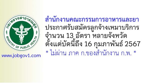 สำนักงานคณะกรรมการอาหารและยา รับสมัครลูกจ้างเหมาบริการ 13 อัตรา ตั้งแต่บัดนี้ถึง 16 กุมภาพันธ์ 2567