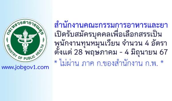 สำนักงานคณะกรรมการอาหารและยา รับสมัครบุคคลเพื่อเลือกสรรเป็นพนักงานทุนหมุนเวียน 4 อัตรา ตั้งแต่ 28 พฤษภาคม – 4 มิถุนายน 2567