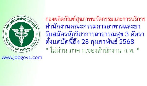กองผลิตภัณฑ์สุขภาพนวัตกรรมและการบริการ สำนักงานคณะกรรมการอาหารและยา รับสมัครนักวิชาการสาธารณสุข 3 อัตรา