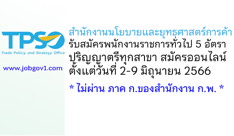 สำนักงานนโยบายและยุทธศาสตร์การค้า รับสมัครบุคคลเพื่อเลือกสรรเป็นพนักงานราชการทั่วไป 5 อัตรา ตั้งแต่วันที่ 2-9 มิถุนายน 2566