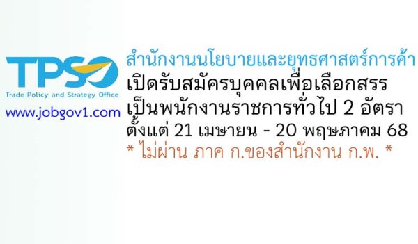 สำนักงานนโยบายและยุทธศาสตร์การค้า รับสมัครบุคคลเพื่อเลือกสรรเป็นพนักงานราชการทั่วไป 2 อัตรา ตั้งแต่วันที่ 21 เมษายน – 20 พฤษภาคม 2568
