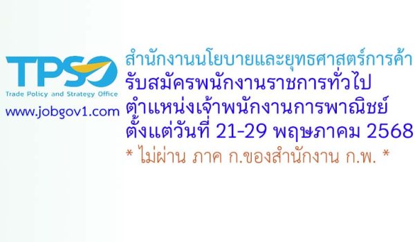 สำนักงานนโยบายและยุทธศาสตร์การค้า รับสมัครพนักงานราชการทั่วไป ตำแหน่งเจ้าพนักงานการพาณิชย์ ตั้งแต่วันที่ 21-29 พฤษภาคม 2568