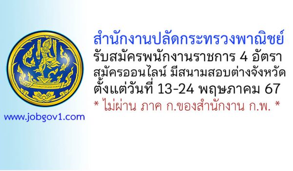 สำนักงานปลัดกระทรวงพาณิชย์ รับสมัครบุคคลเพื่อเลือกสรรเป็นพนักงานราชการทั่วไป 4 อัตรา ตั้งแต่วันที่ 13-24 พฤษภาคม 2567