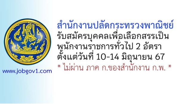 สำนักงานปลัดกระทรวงพาณิชย์ รับสมัครบุคคลเพื่อเลือกสรรเป็นพนักงานราชการทั่วไป 2 อัตรา ตั้งแต่วันที่ 10-14 มิถุนายน 2567