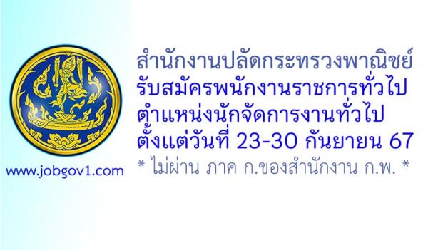 สำนักงานปลัดกระทรวงพาณิชย์ รับสมัครพนักงานราชการทั่วไป ตำแหน่งนักจัดการงานทั่วไป ตั้งแต่วันที่ 23-30 กันยายน 2567