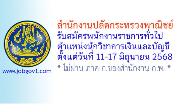 สำนักงานปลัดกระทรวงพาณิชย์ รับสมัครพนักงานราชการทั่วไป ตำแหน่งนักวิชาการเงินและบัญชี ตั้งแต่วันที่ 11-17 มิถุนายน 2568