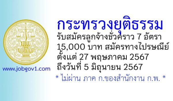 กระทรวงยุติธรรม รับสมัครลูกจ้างชั่วคราว 7 อัตรา ตั้งแต่วันที่ 27 พฤษภาคม 2567 ถึงวันที่ 5 มิถุนายน 2567