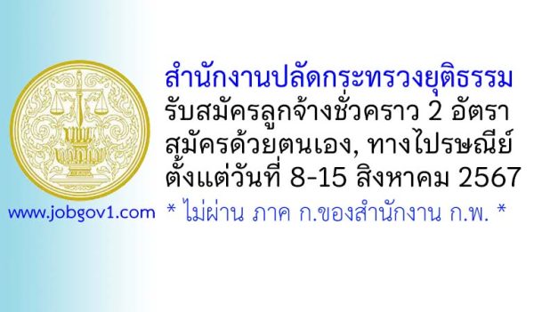 สำนักงานปลัดกระทรวงยุติธรรม รับสมัครลูกจ้างชั่วคราว 2 อัตรา ตั้งแต่วันที่ 8-15 สิงหาคม 2567