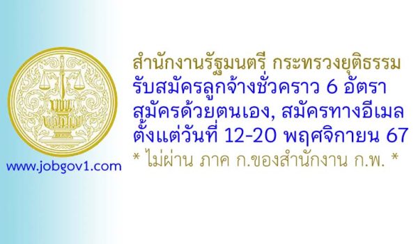 สำนักงานรัฐมนตรี กระทรวงยุติธรรม รับสมัครลูกจ้างชั่วคราว 6 อัตรา ตั้งแต่วันที่ 12-20 พฤศจิกายน 2567