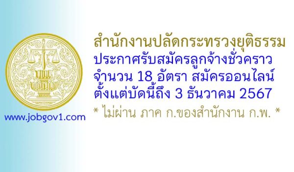 สำนักงานปลัดกระทรวงยุติธรรม รับสมัครลูกจ้างชั่วคราว 18 อัตรา ตั้งแต่บัดนี้ถึง 3 ธันวาคม 2567