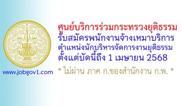ศูนย์บริการร่วมกระทรวงยุติธรรม รับสมัครพนักงานจ้างเหมาบริการ ตำแหน่งนักบริหารจัดการงานยุติธรรม ตั้งแต่บัดนี้ถึง 1 เมษายน 2568