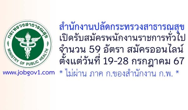 สำนักงานปลัดกระทรวงสาธารณสุข รับสมัครบุคคลเพื่อเลือกสรรเป็นพนักงานราชการทั่วไป 59 อัตรา ตั้งแต่วันที่ 19-28 กรกฎาคม 2567