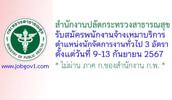 สำนักงานปลัดกระทรวงสาธารณสุข รับสมัครจ้างเหมาบริการ ตำแหน่งนักจัดการงานทั่วไป 3 อัตรา ตั้งแต่วันที่ 9-13 กันยายน 2567