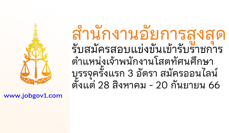 สำนักงานอัยการสูงสุด รับสมัครสอบแข่งขันเข้ารับราชการ ตำแหน่งเจ้าพนักงานโสตทัศนศึกษาปฏิบัติงาน 3 อัตรา ตั้งแต่ 28 สิงหาคม – 20 กันยายน 2566