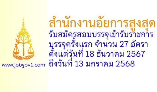 สำนักงานอัยการสูงสุด รับสมัครสอบแข่งขันเพื่อบรรจุและแต่งตั้งบุคคลเข้ารับราชการ บรรจุครั้งแรก 27 อัตรา ตั้งแต่วันที่ 18 ธันวาคม 2567 ถึงวันที่ 13 มกราคม 2568