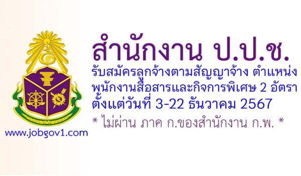 สำนักงาน ป.ป.ช. รับสมัครลูกจ้างตามสัญญาจ้าง ตำแหน่งพนักงานสื่อสารและกิจการพิเศษ 2 อัตรา ตั้งแต่วันที่ 3-22 ธันวาคม 2567