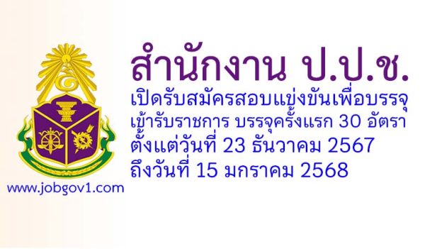 สำนักงาน ป.ป.ช. รับสมัครสอบแข่งขันเพื่อบรรจุและแต่งตั้งบุคคลเข้ารับราชการ บรรจุครั้งแรก 30 อัตรา ตั้งแต่วันที่ 23 ธันวาคม 2567 ถึงวันที่ 15 มกราคม 2568