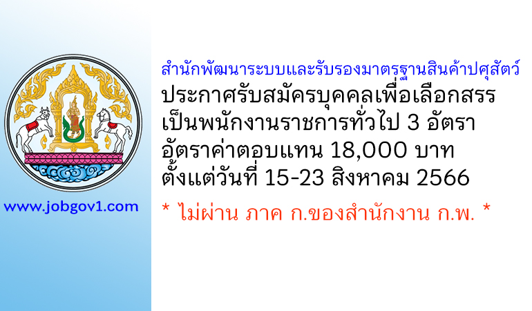 สำนักพัฒนาระบบและรับรองมาตรฐานสินค้าปศุสัตว์ รับสมัครบุคคลเพื่อเลือกสรรเป็นพนักงานราชการทั่วไป 3 อัตรา ตั้งแต่วันที่ 15-23 สิงหาคม 2566