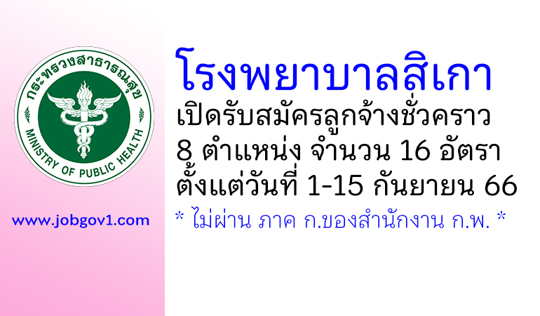 โรงพยาบาลสิเกา รับสมัครลูกจ้างชั่วคราว 8 ตำแหน่ง 16 อัตรา ตั้งแต่วันที่ 1-15 กันยายน 2566