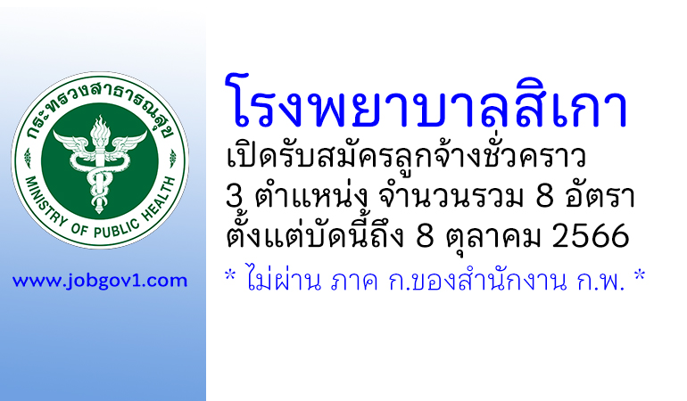 โรงพยาบาลสิเกา รับสมัครลูกจ้างชั่วคราว 3 ตำแหน่ง 8 อัตรา ตั้งแต่บัดนี้ถึง 8 ตุลาคม 2566