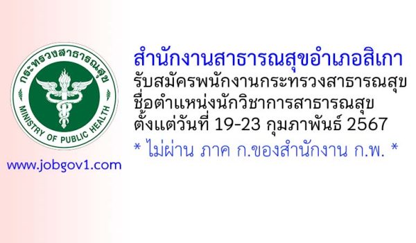 สำนักงานสาธารณสุขอำเภอสิเกา รับสมัครพนักงานกระทรวงสาธารณสุขทั่วไป ตำแหน่งนักวิชาการสาธารณสุข ตั้งแต่วันที่ 19-23 กุมภาพันธ์ 2567