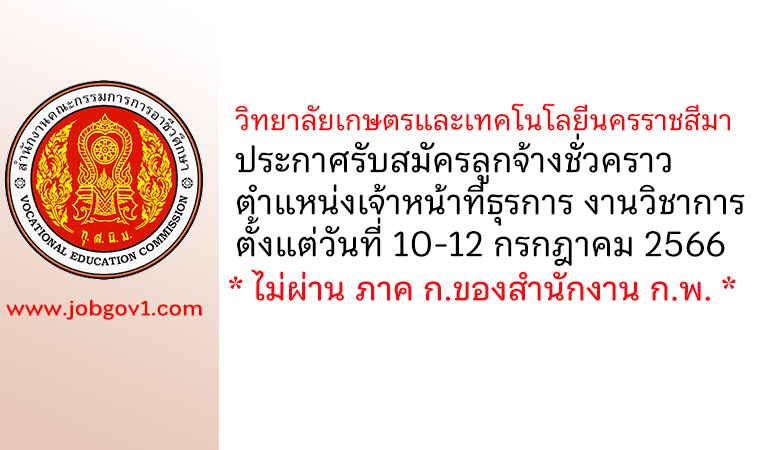 วิทยาลัยเกษตรและเทคโนโลยีนครราชสีมา รับสมัครบุคคลเพื่อเลือกสรรเป็นพนักงานราชการทั่วไป 2 อัตรา