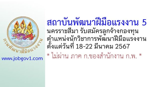 สถาบันพัฒนาฝีมือแรงงาน 5 นครราชสีมา รับสมัครลูกจ้างกองทุน ตำแหน่งนักวิชาการพัฒนาฝีมือแรงงาน ตั้งแต่วันที่ 18-22 มีนาคม 2567